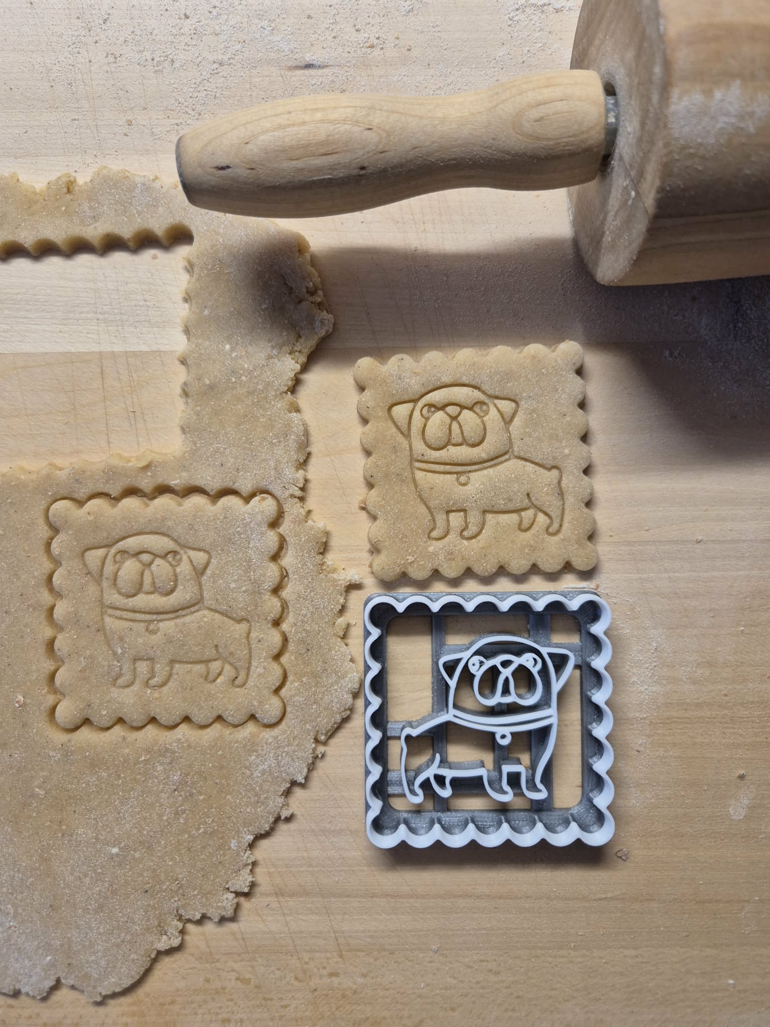 Először is nyugodj meg, van rá megoldás. Végy egy fogpiszkálót vagy egy fogkefét és folyó víz alatt tisztítsd meg a kiszúró minden részét. Ahhoz, hogy ez többé ne forduljon elő, készítéskor figyelj az alábbiakra! A legfontosabb, hogy a tészta legyen lehűtve. Érdemes a sütés előtt egy nappal begyúrni és felhasználásig a hűtőben tartani, de minimum 2-3 órát kell hűteni, hogy a benne lévő vaj megszilárduljon. Ha már elég kemény a tészta lehet kezdeni a szaggatást. Fontos, hogy vékonyra nyújtsd a tésztát, kb 3-4 mm. Ha ennél vékonyabb, nem fog belenyomódni a minta, ha ennél vastagabb könnyebben beleragad.